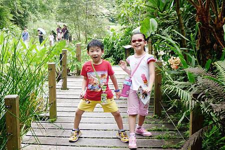 離開生物多樣性探索館,我們往上爬坡,走到空中雨林步道. 在空中雨林步道,並沒有看到什麼令人驚豔的動物或植物. 而Ray直呼著: “媽媽,我看到蓮霧長在樹上了…” 原來,空中雨林步道中,最令他印象深刻的,竟是蓮霧樹... 接著,步行到水生植物公園,欣賞各種蓮花,還有許許多多我記不得名字的水生植物. 步道旁邊有貼心又實用的裝置-導覽按鈕,遊客們可以選擇中文,英文或日文三種語言的解說. 對了解多樣水生植物來說,幫助很大.