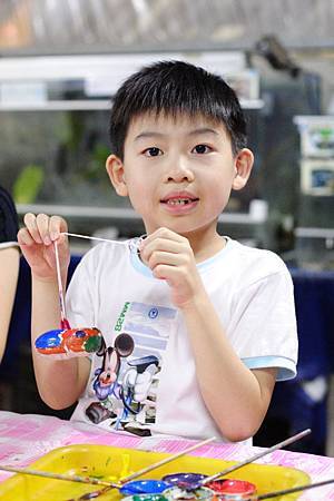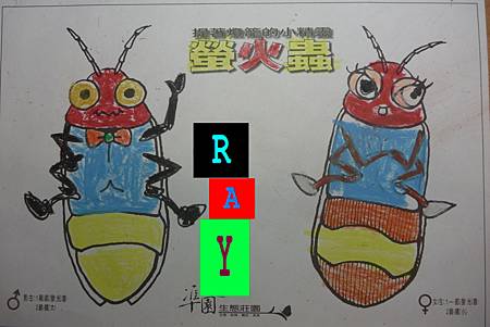 為什麼不幸咧? 因為在DIY彩繪螢火蟲時,時間很趕,想要等顏料乾都很難. 所以大家提著色彩繽紛,顏料未乾的DIY彩繪螢火蟲往黑暗處賞螢去. 當然在黑暗中難免有碰撞,加上小孩們手提的位置比較低,因此大家的衣褲上多少都沾上了彩色的顏料(不幸的當然是一回家就要趕緊清洗衣服的媽媽呀!). 婆婆新買的白色薄長袖綁在腰間,被沾染了最多顏色. Ray還說: “阿嬤的白色外套變成了彩色的外套.”