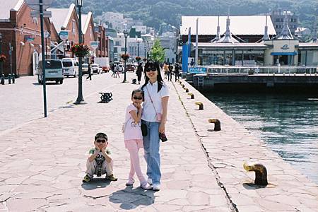 第五站-五陵廓城跡http://www.goryokaku-tower.co.jp/,它是日本第一座宛如星星五陵狀的城堡,早期為了防衛北領土而建造. 因為跟團的時間有限,我們也不敢走太遠. Ray和Minnie(小姪女)在箱館奉行所廳舍前奔跑得不亦樂乎,寬廣的空地,配上徐徐微涼的和風,歇坐在綠樹蔭底下~也是一種幸福.