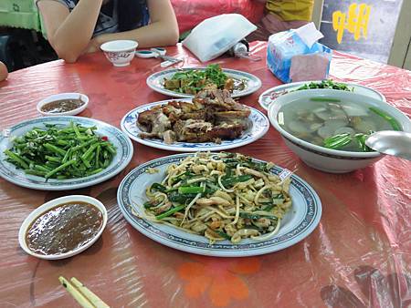 萬巒豬腳街很多店家在攬客做生意. 我們隨意到了一家在地人推薦的林家豬腳http://www.wanluan-lins.com.tw/,點了半隻豬腳(連Ashley和Ray都說好吃),炸豆腐,鳳梨蝦球,炒河粉,炒地瓜葉,空心菜和蛤蠣湯,還五百元有找ㄟ (真懷疑老闆是不是算錯錢?) 比起台北的消費,實在太便宜了.
