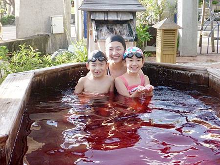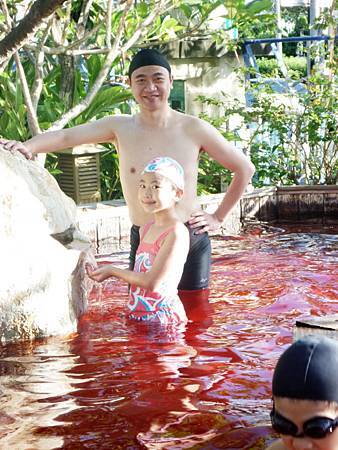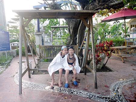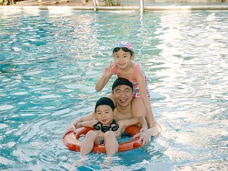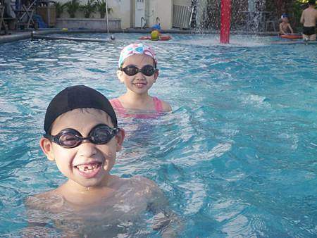 抵達第三站墾丁天鵝湖湖畔別墅飯店時,已經下午三點多,接近四點. 待我們完成check in,便迫不及待換上泳衣,享受戶外游泳池和SPA. 兒童池的水很淺,所以連不會游泳的Ashley和Ray也嫌水太淺,紛紛跑過來和大人們一起玩水(其實大人池也有分深的地方和淺的地方,我們一直陪伴在孩子周圍以策安全). 游泳池旁邊尚有SPA池和木製的室外搖椅,...等等,因為人不多,所以光光在這區就待到晚上六點才離開.