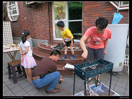 下午四點,請Angel到地下室幫忙找出多年前她買的烤肉架,自己帶著Ashley和Ray趕忙在一小時內衝去大賣場,採買烤肉用品和食物飲料,並且迅速載回來. 接著,請Alec幫忙升火. 於是,我們這個非常陽春的中秋烤肉,開始囉!