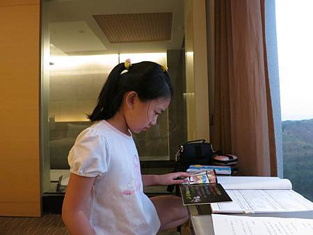 抵達清新溫泉度假飯店時,已約莫下午五點. 待我們完成check in後,在房內稍作休息. Ashley在房內寫完未完成的功課,Ray則是很新奇地玩起捉迷藏(衣櫥可以兩面開). 雖說這是雙人房,並不用為Ashley和Ray額外付費,而且床夠大,泡湯用浴盆更大(四人一起泡澡都沒問題),...很不錯的住宿環境.