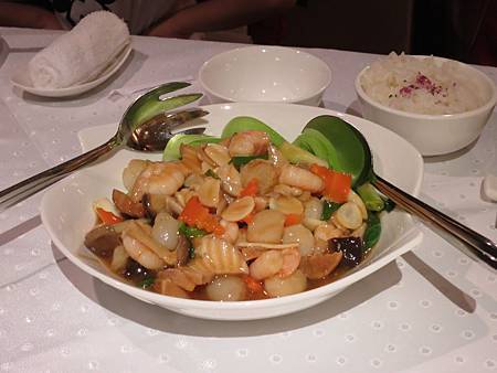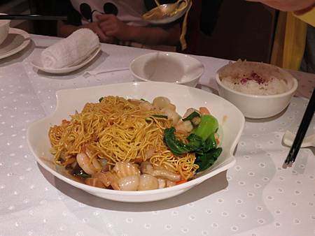 雖然我們隨意點了,像是廣東海鮮炒麵(Willy和Ashley的最愛),明蝦腐皮捲,XX乾扁四季豆,XX嫩雞球,XX鯛魚湯配上白飯 (Sorry! 有些菜名記不住) ...等等. 每道菜色都是出乎我意料的好吃,不僅有特色,用料也很實在. 連贈送的涼筍小菜都覺得鮮美. 唯一美中不足的是Willy嫌XX嫩雞球好像鹹酥雞似的油炸物,他個人不喜歡這道菜.
