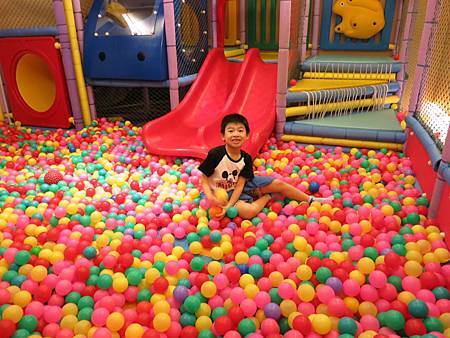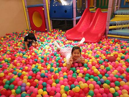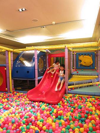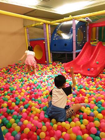 接著陪Ashley和Ray到兒童遊戲室玩. 這個時段,剛好整間遊戲室都沒有人使用,所以Ashley和Ray玩得很high. 光在球池,就耗了好久... 後來想想,從小到大,我怕公共球池不夠乾淨,所以不曾帶他們去玩過. 今天來不及阻止,已經跳下去了. 只好破例,讓他倆玩個痛快吧!