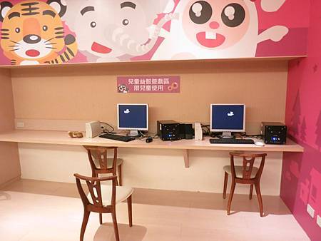 兒童遊戲間裡,還有一面書櫃,內容包括大人,小孩,中文,英文的書籍都有. 根本不用自己帶睡前故事書,來這兒借就好了. 另外,還有電腦遊戲區. 不過,我可是要Ashley和Ray來度假的,不是來加深近視的. 所以沒讓他們玩.