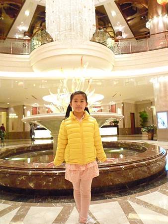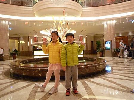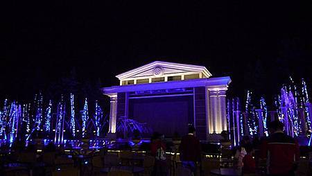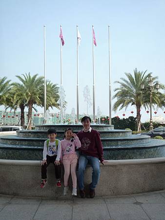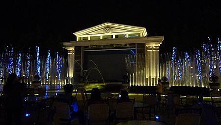 我們一直待到晚上七點才離開水療館,緊接著跑到夢之湖看水舞秀. 雖然沒有看到螢幕的動畫(不知何時才有?),但光光是聲光加上水舞,就吸引Ashley和Ray佇足了許久. 此時戶外的氣溫已明顯降低,還好在吃晚餐前有回房裡拿外套.