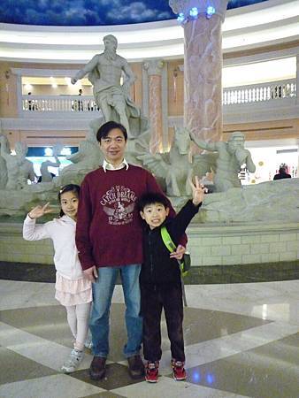 本想到義大世界購物廣場B區看看那號稱媲美澳門威尼斯賭場的LED天幕,據說天花板的星空可以呈現出四季,晨昏與星座等多樣變化,配合音樂和光影的變化...可是,今天居然遇到噴水池"維修中",只能和雕像拍拍照,真是可惜!
