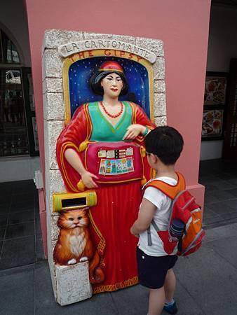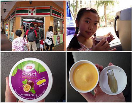 新加坡的氣候很熱,只有雨季和夏季之分. 還好不是七八月來,因為光現在走逛小印度區的街頭,拍拍特殊的建築,商家和飾品,就已經讓Ashley和Ray熱到哇哇叫. 然而集合時間還沒到,索性帶他們到轉角口的7-11內逛逛吹冷氣. 後來,Willy買了兩把雨傘(雖然我已為全家人準備了輕便雨衣)以備不時之需. Ashley也買了一盒百香果口味的冰淇淋(結果發現很好吃ㄟ,又折回去多買了幾盒到遊覽車上吃).