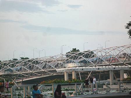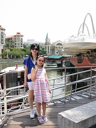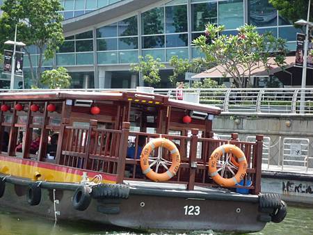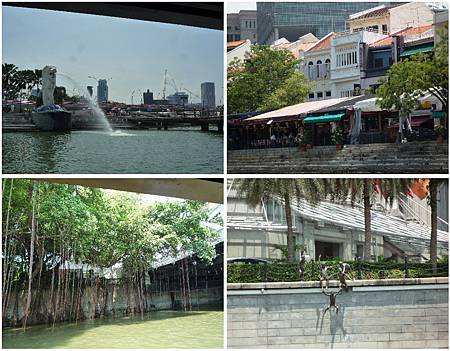 船上播放著華語解說的錄音帶,讓我聯想到美國德州San Antonio的River Walk景緻. 我們沿著新加坡河,欣賞沿岸風光. 像是會噴水的魚尾獅,最大載客量的摩天觀景輪,濱海灣金沙娛樂城,海事博物館及藝術科學博物館(外形像朵蓮花,又像一隻手)...等等地標,都看得非常清楚.