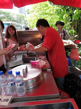 之後,我們要上遊覽車前遇到賣冰淇淋磚的小販. 團員紛紛買來品嚐,我們也買了一個草莓和一個巧克力口味的冰淇淋夾餅乾分食著吃吃看.