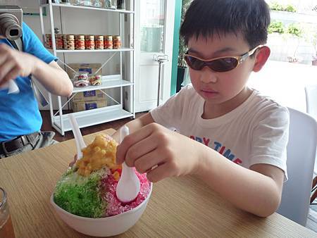 之後,導遊留時間讓我們下船走逛魚尾獅公園One Fullerton(魚尾獅像新家). 除了拍拍照之外,我們在旁邊的illy,叫了一碗Ice Kachang(紅豆冰)和一杯冰檸檬紅茶來解熱消暑. 其實我們的背包內都備著礦泉水,要不是為了想要坐在店裡面吹冷氣,可能會選擇買隔壁攤的冰沙吧! illy的檸檬紅茶很一般,比較特別的是Ice Kachang(馬來西亞的招牌冰品),上面居然有玉米醬ㄟ. 而且店家很小氣喔,拒絕給我們四支免洗湯匙. 不過,還是台灣的紅豆冰好吃,料多味美又實在.