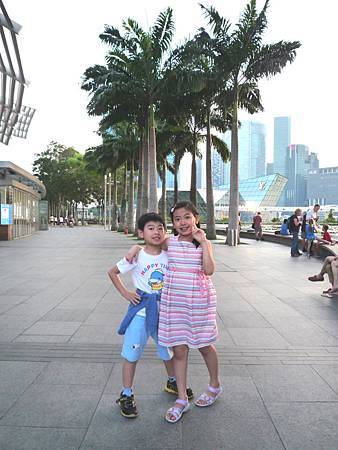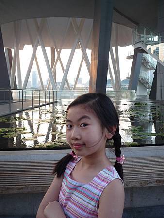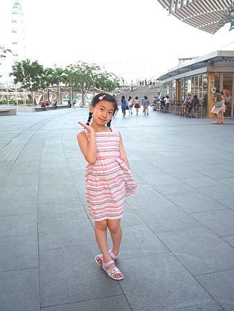 所以只能帶她到金沙外頭走走拍拍,新加坡的太陽公公還真的到晚上七點多才下班咧! 我們提前佔了好位子(前兩三排會被水噴到,所以我就沒拿相機出來拍),等待晚上八點開播的水舞秀-奇幻彌漫WonderFull. 它是一個齊聚燈光,音樂及音效的十三分鐘免費燈光水舞表演 Please see following link for details: ( http://hk.marinabaysands.com/Singapore-Entertainment/WonderFull/ ),呈現的形式蠻特別的,利用水當布幕來投影,而且這些水都是可回收再利用的.
