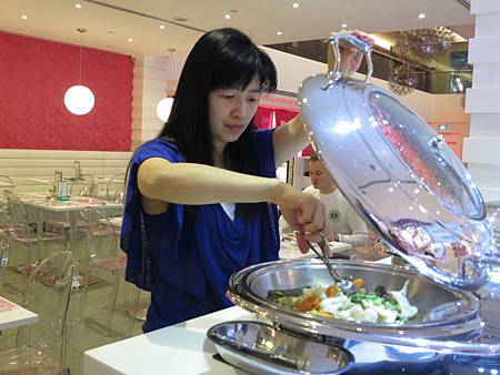 我個人覺得瑞麗酒店Hotel Re!供應的皮蛋粥很好吃,義大利麵也不錯吃喔,水果至少三到四樣,外加少許的青菜. 對我來說,光挑喜歡吃的吃,就已經很足夠了. 至於Ashley和Ray 幾乎是永遠的喜瑞爾Cereal(每次自助餐buffet式的早餐,他倆只知道拿cereal,真虧~). 待全家用完早餐,再回房收拾行李,時間上還蠻寬裕的.