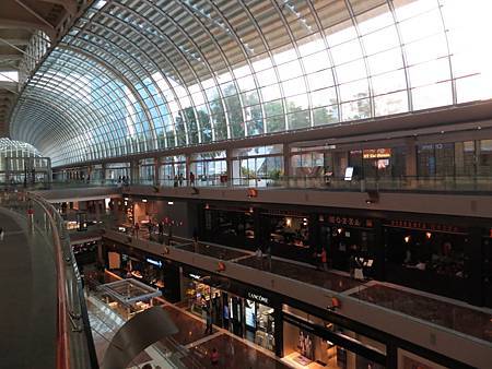 反正晚餐內容很不合我們的胃口,所以我們又離開Food Court四處走走逛逛. 本想坐坐看舢舨船,看著船上有專人為您划船,好優雅的fu~. 好不容易找到買票排隊等候處,怎奈Ashley不知哪根筋不對,又開始耍脾氣不想坐了. 我會想搭舢舨船,不單是為了浪漫氣氛而已,因為官網介紹過:「...當您繞行雨之窗 (Rain Oculus) 時,記得許下願望,然後再往上看。您或許能幸運看到每小時出現一次的瀑布,那是由國際藝術家 Ned Kahn 所創造、直徑 22 公尺寬的大碗,架在 90 噸重的鋼結構上,從二層樓的高度,每分鐘宣洩超過 22,000 公升的水」。
