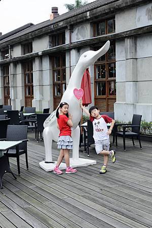 以帶老人和小孩出來走走,散散步的地方來說,「松山文創園區」是個不錯的環境. 它有一個生態池(當天僅看到少數的鴨和魚),可以讓人依著池邊悠閒漫步. 而生態池對面有間TMSK小山堂餐廳Facebook:www.facebook.com/xiaost,看起來蠻有特色的(但因午餐飽到現在,所以沒有進去試試它的餐點). 值得一提的是TMSK小山堂之前有一塊空地可以讓孩子們跑跑跳跳,父母可以坐在TMSK小山堂的戶外座位上休憩,蠻好的.