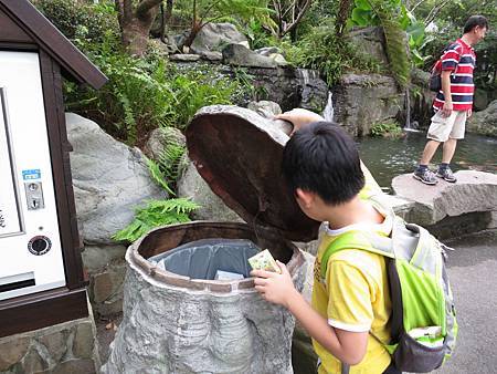 大廳有專門人員為我們解說,一日遊行程還分三種:逍遙遊,椰林遊,精緻遊(詳情請查官網http://www.dabangan.com.tw/project/1_1.php?id=50). 我們選擇『逍遙遊』(爬山+泡湯)行程,這樣才不會為了要吃自助晚餐而覺得時間很趕. 這位專員還拿四張尋寶(章)地圖給我們,意思是只要你一邊爬山,一邊尋找上地圖上的特殊樹木啦,不同的吊橋啦,並且蓋好章,就可以得到一份精美禮物(其實只是生態明信片啦!).