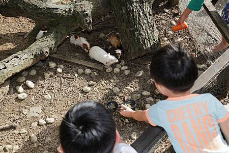 我們學其他客人停在大馬路邊(還好還有位子停). 一入內只見小人兒到處追著兔兔跑(客人很多). 買票(200元/人)進場後,服務人員帶我們進入『包廂』. 想不到這裡的包廂挺多種的,我還看到他人坐和室包廂咧~ 稍微走逛一下園區,可以看到小兔啦,天竺鼠啦,山羊啦,還有色彩鮮豔的鸚鵡...等等. 反正這些溫馴的小動物,最吸引孩子們了.