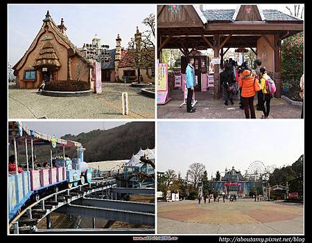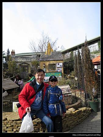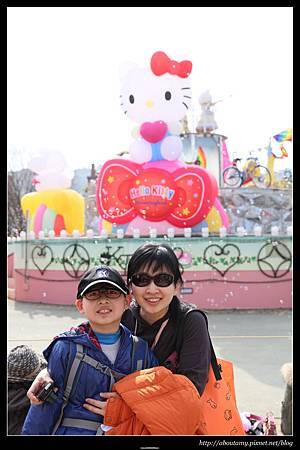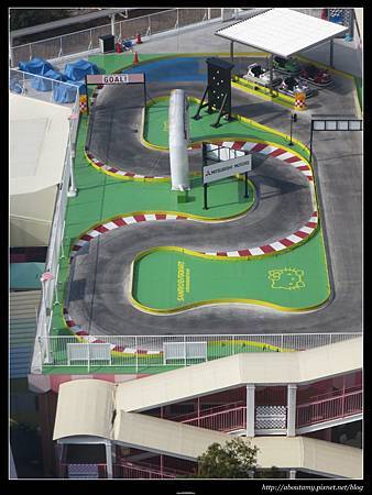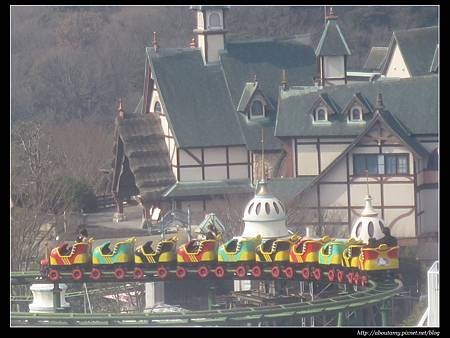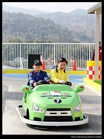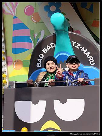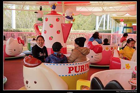 一進門,導遊帶大家去參觀(1)Kitty城,參觀Kitty可愛的家. 可是我不想花太多時間參觀,所以先帶著孩子們直衝(2)雲霄飛車. 這可是我見過最溫和的雲霄飛車(四歲以上有大人陪同就可以玩)喔,而Ray還是一路叫到底. 直到Ray下車看到那一點兒也不恐怖的軌道,才知自己叫的太誇張了.