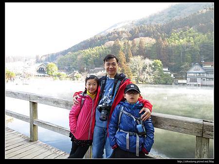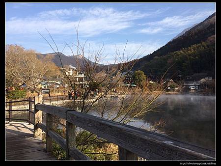 據說附近的「下湯」(下ん湯)是可以看到金鱗湖的戶外溫泉,在熱呼呼的溫泉裏看著魚而游來游去,是個難得的享受(但是屬於老式公共澡堂,男女混浴,有誰敢試啊?). 當天,我們還看到日本人的劇組在另一頭等著拍片呢~