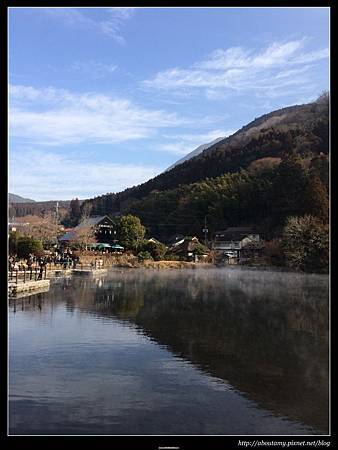 根據http://www.zipangguide.net/travel/sight/oita/kinrin_lake.html, 金鱗湖是1個周長約400公尺的小湖,湖的西邊湧出溫泉(至今湖底仍不斷冒出溫泉),而東邊湧出的卻是清水. 這個溫泉和清水各佔一半的湖泊,因溫度差異而使得湖面上產生晨霧瀰漫的特殊美景.