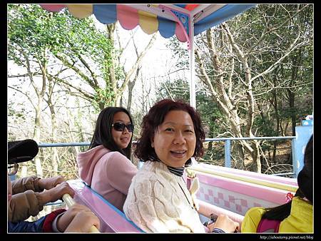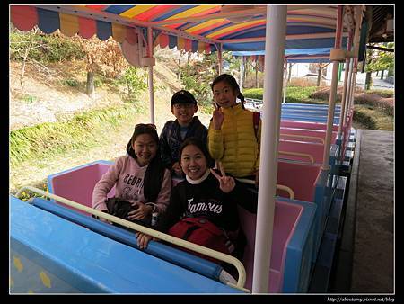 碰到從Kitty城出來的婆婆和大姑,我們便一起搭乘(4)遊園小火車. 途中又是可愛的Kitty圖案~