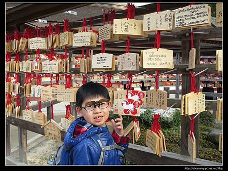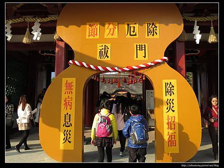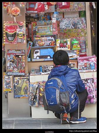 從停車場往太宰府的方向走去,還有好長一段距離. 但是道路的兩邊全是店家,擺出琳瑯滿目的商品,令人目不暇給. 2月剛好是「節分厄除祈願大祭」,所以不只觀光客,好多日本人也來此,整個街道熱鬧不已(可要牢牢牽緊小孩啊~). 一路上,Ray又被店家的小玩意兒所吸引. 為了讓Ray好好走完全程,我答應他離開此地前,才讓他買紀念品.