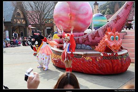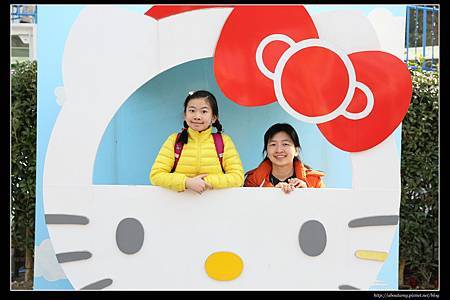 Ray開始肚子餓了,於是我就近買了熱狗麵包給他吃(因為時間有限,也沒去比較哪一家比較好吃). 等遊行結束,導遊又帶著我們趕往下一個景點. 別小看這Kitty園區小小的,我們還沒時間玩到(11)回遊型主題館Kitty LAB呢!