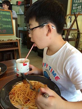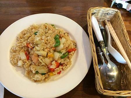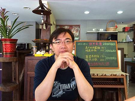 我們把車停在大湖公園捷運站http://web.trtc.com.tw/c/stationdetail2010.asp?ID=027的地下停車場,在附近覓食. 結果走進一家不知名的早午餐小店(回家查了一下,店名叫凡凡咖啡ifun,只是2010年5月以後換他人做). 這家店內還真小耶,頂多三,四桌客人,而且假日午餐有超多限制,賣的是簡餐,有附飲料,但份量不多就是了. 菜單寫在小黑板上,大概只有四種餐可選吧! 店內的裝飾只能說怪怪.
