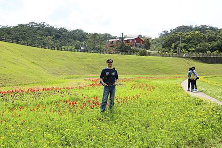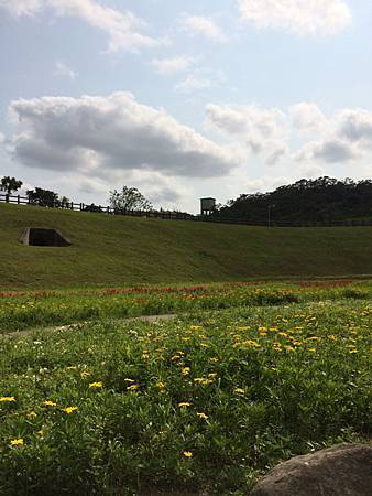 雖說花海已經沒有剛種植時的美貌,但在市區裡,能拍到這樣一片美景,就已經很開心了. 況且,還不用開車大老遠跑到桃園或台中去,就可以看到花海了. 重點是享受那種開闊的空間,放眼望去的綠地讓人有心曠神怡的感覺.