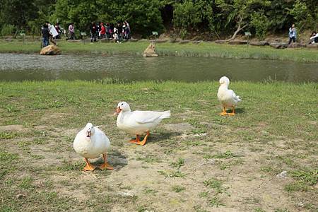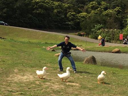 今天的天氣算超讚的,涼爽的微風,配上煦煦的陽光. 若是夏季到來,我才會允許Ashley和Ray玩水吧! 一直走下去,即便只是慢步都讓人覺得舒爽,還捨不得太快走逛完咧. 這裡的池塘,除了可愛的鴨子(北市工務局水利處特別放養五隻白鴨來吃福壽螺以保持生態平衡),還發現有劇組在此拍片取景呢(雖然不知是哪一齣戲)!