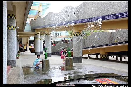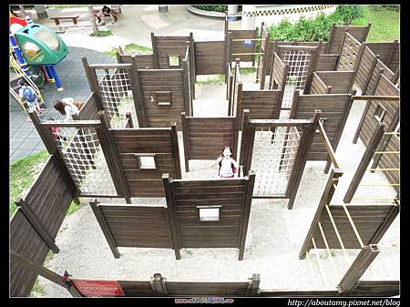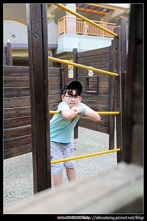 之後,我們走到「愛荔枝主題餐廳」下面的『木造迷宮』. 小Q走完迷宮立刻被旁邊的『溜滑梯』、『戲水池』所吸引,而Ashley和Ray小玩一下便轉身去玩古早時候的抽水幫浦.