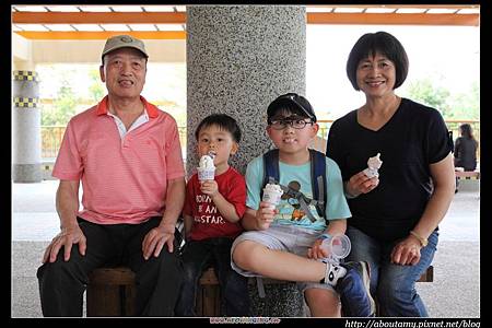 天氣實在太熱,爸媽和Angel,姊夫都找位子坐下來休息. 等孩子們玩了一陣子後,媽就請大家吃冰. 原本以為大家應該會選荔枝冰棒,畢竟來到就是愛荔枝樂園,沒想到沒人選ㄟ~.