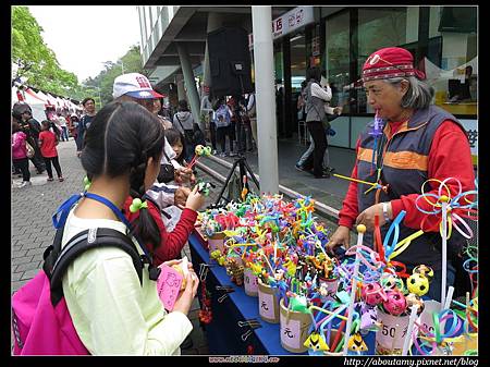 提早到達的我們先報到,然後在附近逛逛. Ashley和Ray看到有攤販賣自製的吸管藝品,覺得很新奇. 想買來當範例,自己回家練習做做看. Ashley選了粉紅色大象,Ray選了藍色的馬. 兩種都可以吹出聲音,不同的是: 藍馬可以一邊吹,一邊做出跑步的動作.