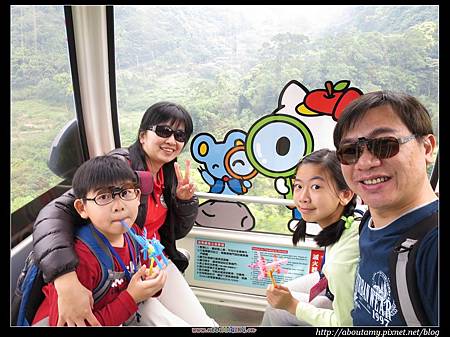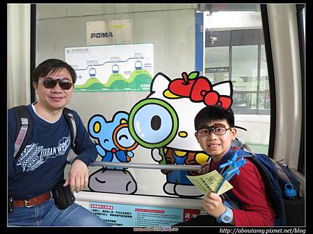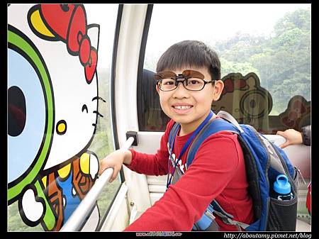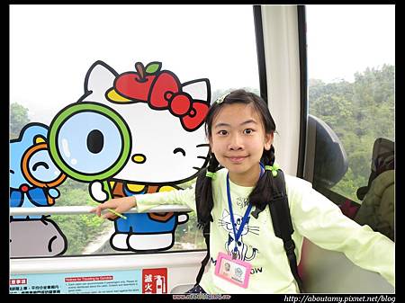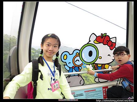 待全家都睡飽吃飽,準備好可以出門,也將近十點鐘. 我們開車停在婆婆家的地下停車場,再步行去搭乘木柵線捷運. 果然,光搭個捷運就擠到爆. 兒童節不僅國小小朋友可以免費搭乘纜車,還可以得到Hello Kitty圖案的可愛鉛筆,所以人數多的不得了.
