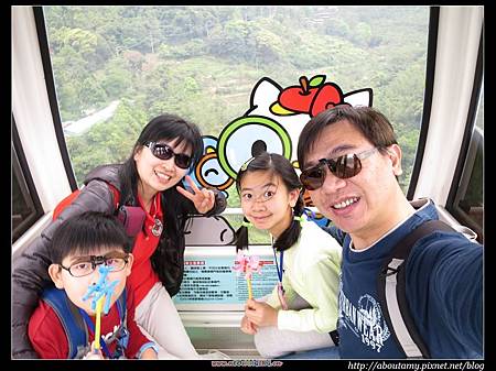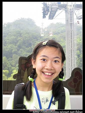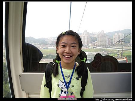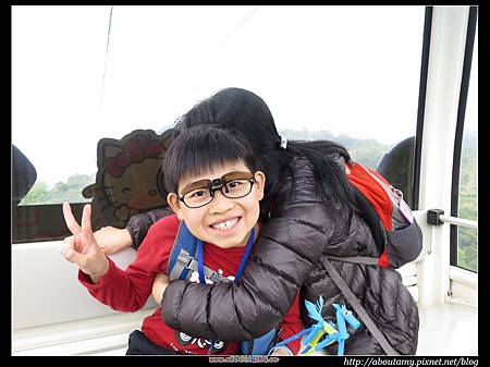 某一段,當Willy叫Ashley跟Ray換位子拍照時,Ray驚嚇得哇哇叫(很大聲). 結果服務人員關門時,好心地詢問我們怎麼了? 我們很尷尬地回答:「沒事.」 如果說我算膽小,那Ray的膽可能只有我的二分之一吧! 之後,我故意抱住Ray,叫他要保護害怕的媽咪. 頓時,他的男子氣慨油然而生,就不再緊捉住桿子不放,露出開心的笑容~.
