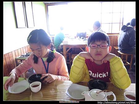 到了店內,只見兩位沒有笑容的店員(大概太忙了!). 小等了一會兒,終於有位子. 於是我們單點了『茶』葉炒飯,蜜『茶』排骨,炸『茶』葉,丁香山蘇,烏龍『茶』煎蛋,養身菇山藥湯. 想讓孩子們吃吃看,所謂以『茶』入菜的茶葉料理是什麼樣子. 畢竟貓空產『茶』嘛~