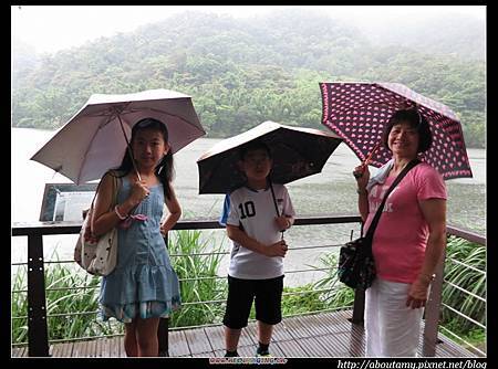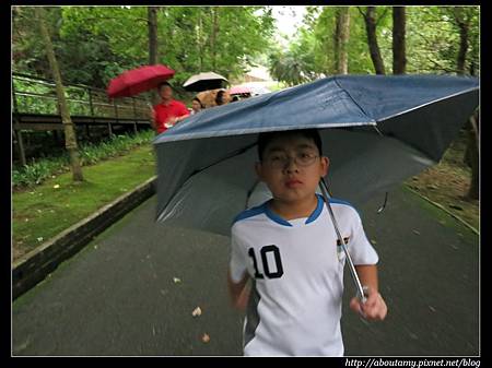 離開後,繞了一陣山路,來到兩蔣文化園區. 此時也是人不多,除了幾台遊覽車載來觀光客. 我對蔣公雕像群沒什麼興趣,所以直接往慈湖的方向走去. 沿途有竹林,平緩地木棧道,不用走多久,就可以見到慈湖. 正當我想要環湖走走,雨卻一直滴下來,而且越下越大. 原本以為只是毛毛雨,沒想到來個傾盆大雨. 當下,不管是繼續往前進或者往回走到大門口,即便撐著傘,也免不了全身濕答答(大雨連著狂風,打濕遊客們全身). 這下子,換我開始內疚起來,為什麼出門前忘記先看天氣預報呢? 還拖著老媽和孩子們一起"下水"... 雖然,兩蔣文化園區沒有逛成,敗興而歸. 但是回台北後,大家去吃美味的川菜當晚餐,讓滿足的倆小暫時忘卻掃興的半日遊.
