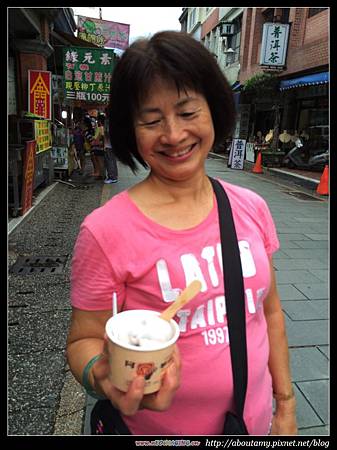 終於,我們走到了老街(老媽說好像不是電視上看到的大溪老街?!). 沿途也是隨便亂逛,亂買. 感覺上人煙稀少,不管是店家或遊客都沒有我想像中熱鬧. 後來,天空開始飄起毛毛雨,我們趕緊買了黃大目豆乾當伴手禮,就往回走. 回程走對了階梯,距離月眉停車場就近多了. 要是早知道會在TINA廚房用餐,就可以停在店家的停車格內,免停車費.
