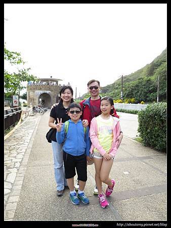 所以這次只計畫帶Ashley和Ray騎完「闔家同遊輕鬆騎路線」(約10km),自福隆火車站(約2km)舊草嶺隧道(約3km)石城觀景區(約4.5km)折返福隆車站. 我們到達古道情懷鐵馬出租車店約莫下午三點多,租了兩台(100元/次)變速腳踏車給Willy和Ray一人各一台. 我則租了(400元/2hr)的電動腳踏車載Ashley(因為她不敢騎協力車).