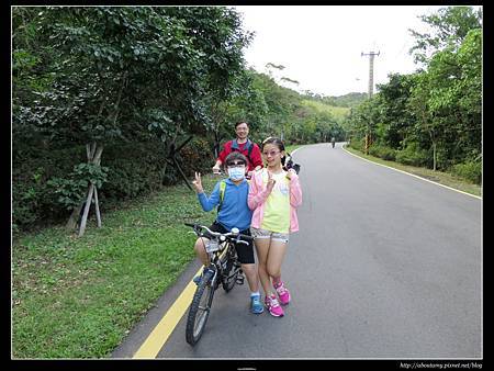 我們朝著台灣最長的鐵馬隧道~「東北角舊草嶺自行車隧道」~出發! 一路上很好騎,稱得上坡道的地方只有一處彎口吧! 這個時候,騎乘的遊客反倒沒有我想像中多,整條路很寬敞又舒適. 到接近隧道北口(制天險)時,有些造景供遊客們拍照. 而我們隨興拍了幾張,深怕趕不及在舊草嶺自行車隧道關門前回來(開門8:30AM~5:00PM關門).