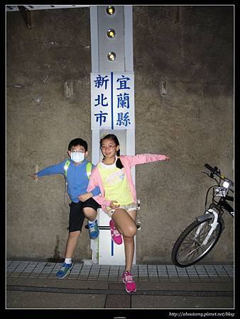 騎到了隧道南口(白雲飛處),發現新草嶺隧道就位在舊草嶺隧道旁邊. 此處有一座小雕堡,但雕堡下面還在施工中,好像是要蓋廁所,所以用黃線部分圍起來. 我們沒爬上雕堡,只在觀景台附近拍拍照就折返. 回程特地要求Ashley和Ray在新北市和宜蘭的交界處讓我拍張照. 雖然感覺上沒那麼遠,但跟別人說我騎車騎到宜蘭一定沒人相信,所以拍張照留念吧!