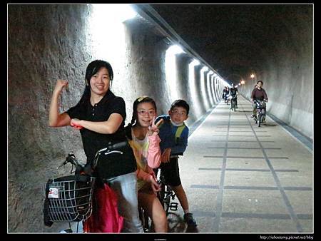 還好感冒還沒完全康復的Ray,沒有因為體力差而半途而廢. 不愛騎車的Ashley也配合著大家的步伐,沒有鬧脾氣. 當我們騎著單車穿越舊草嶺隧道時,在隧道火車的音效下,宛如騎在涼涼的鐵路隧道內,感覺復古又有趣. 如果夏天來騎自行車,肯定暑氣全消,不想離開. 而且裡頭照明充足,行車很安全,好多遊客都是扶老攜幼全家來騎車.