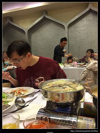 晚餐和早餐都是在莊園餐廳http://www.southgarden.com.tw/wep4mpp/wh_a6mpp/0000/store/southhome.action#top,因為此為住房方案的內容之一. 晚餐是超乎我們想像的澎湃,有海鮮火鍋,外加buffet. 因為怕吃不完,所以先請服務人員端出三人份的海鮮料就好. 沒想到,每一種海鮮都大又肥美,加上buffet還有多種好吃的菜,所以根本就吃不完吶~. 我們晚上七點才用餐,當時檯面上的火鍋肉類,只剩羊肉片及豬肉片,當婆婆問: 「怎麼沒有牛肉呢? 」 服務人員聽到,就立刻送牛肉片到我們的桌上. 真是親切又有效率!