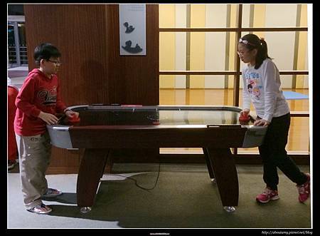 餐後,我們到休閒中心http://www.southgarden.com.tw/wep4mpp/wh_a6mpp/0000/store/southhome.action#top繞繞(休閒中心不大). 婆婆見到健身房的器材都是她所熟悉的,所以非常開心地使用著! 而Ashley和Ray算是第一次姊弟對打桌球,雖然技術超不純熟,但也玩得欲罷不能.