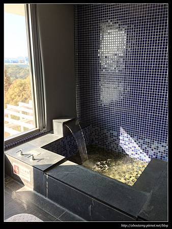 讓我覺得特別的是兩個戶外湯池,因為泡在裡面的同時,可以遠眺一片綠地,感覺很舒服. 本來我還怕冷,不敢離開水療SPA池. 但是後來發現戶外湯池的水溫更高,不論視野或空氣都更加舒適~. 可惜忘了帶防水相機(也不知裡面可不可以拍照就是了)來,只能放一張透過玻璃窗拍攝的照片意思意思囉.