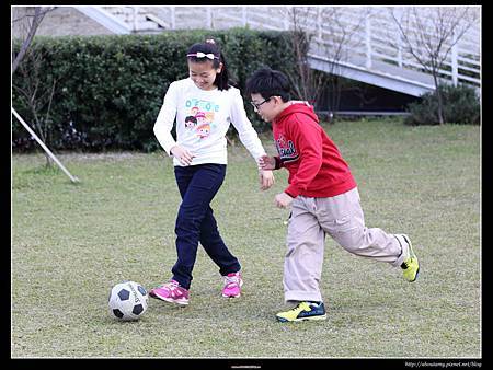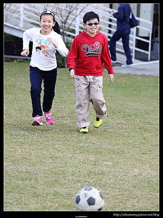 服務人員很親切,雖然check in時間未到,但他們告知欲住房的客人可以先玩設施(只要用證件抵押即可). 我們趁此空檔先到周邊逛逛,Ashley和Ray已經迫不及待地拿起球往草坪上跑(如果沒帶玩具的遊客,可以跟飯店B1櫃台租借). 不過,等我閒逛了一圈,發現此飯店目前也只有這塊空草坪而已. 更深入一點兒的地方,雖然有一座人工池. 但池中並無景觀魚或鴨鵝可供遊客餵食,周圍所種植的樹木都還很小,沒有什麼庭園造景可外拍,實在很可惜!