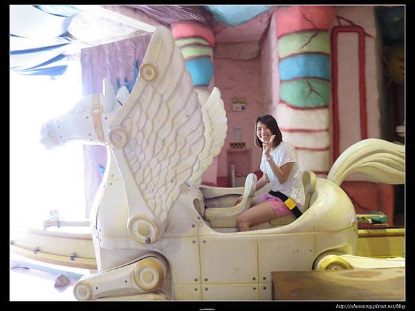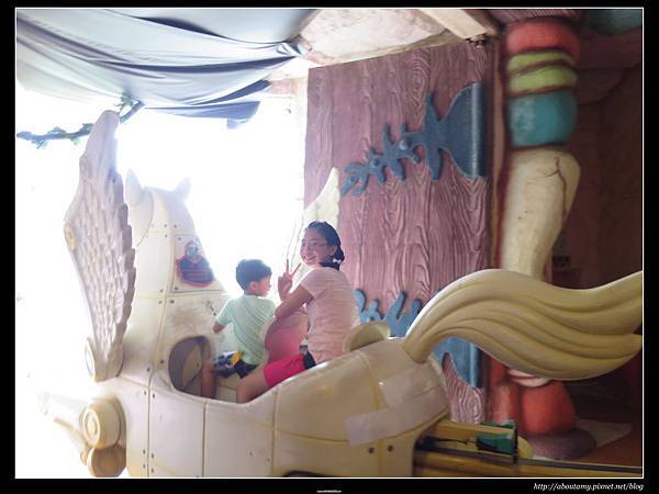 沒想到,玩完『蒸氣火車』雨停了. 頓時空氣好清涼~ Ashley又要求我陪她去搭乘『飛毯』. 『飛毯』看起來不恐怖,但我的心還是像被拋起又落下似的,怕怕! 還好膽小的Ray沒搭乘. 最末我們在『巴札像館』用完優惠卷,拍了一些照片. 將近下午六點,接到Willy的電話,提醒我們該回家了!