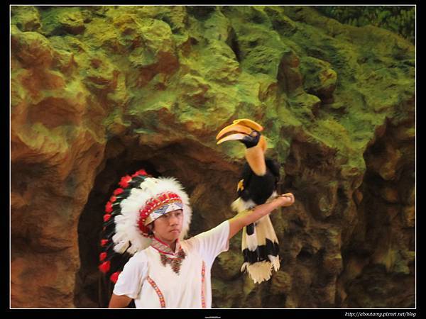 好加在『鳥飛飛劇場』沒讓孩子們失望,縱使只有三組客人. 表演者們還是很認真賣力地演出. 尤其看到那平日不常見的稀有大型鳥類們,極具教育意義. 表演者們不會叫鳥兒們耍特技,只是以最精彩且符合劇情的方式歡迎鳥兒們出場,比起一般要求鸚鵡算數學,或是走繩索、騎腳踏車的表演要人道多了. 最末還放出送客的小鳥們,有的還飛到我們身上咧~. 如此地近距離,真是難得的經驗啊!