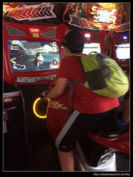 設好了GPS,大約9點多才出發. 一上北二高就小小塞車了一下,原來前方有交通事故發生,導致道路縮減. 後來下了交流道後,Ray到便利超商借廁所,所以我們又小小耽擱了一下. 抵達六福村時,我們先把玩水會用到的換洗衣物放在門口置物櫃裡. 心想: 這次有水陸暢遊(之前六福水樂園都還沒蓋好咧),對於夏季愛玩水的Ashley和Ray來說,最適合也不過了!